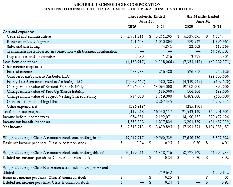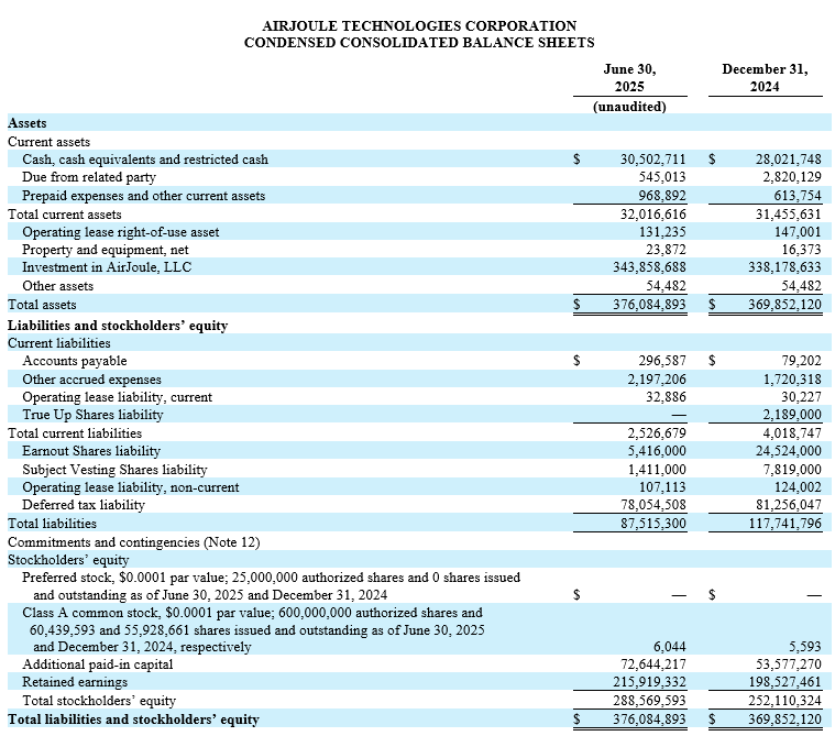 AirJoule Technologies’ condensed consolidated financial statements and related footnotes are available in its Quarterly Report on Form 10-Q for the period ended June 30, 2025, which is expected to be filed with the Securities and Exchange Commission (“SEC”) on August 14, 2025.